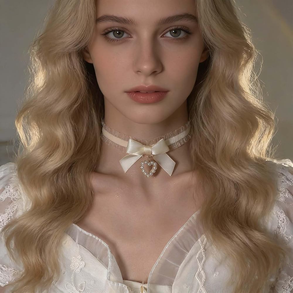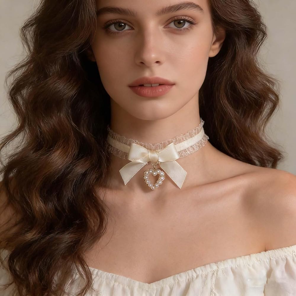 Lace bow heart pendant necklace.Gift Occasion:Suitable for any Occasion, Such as Beaches, Event Parties, Dance Parties, Dates, .Daily Collocations,Banquet,Weddings, etc.