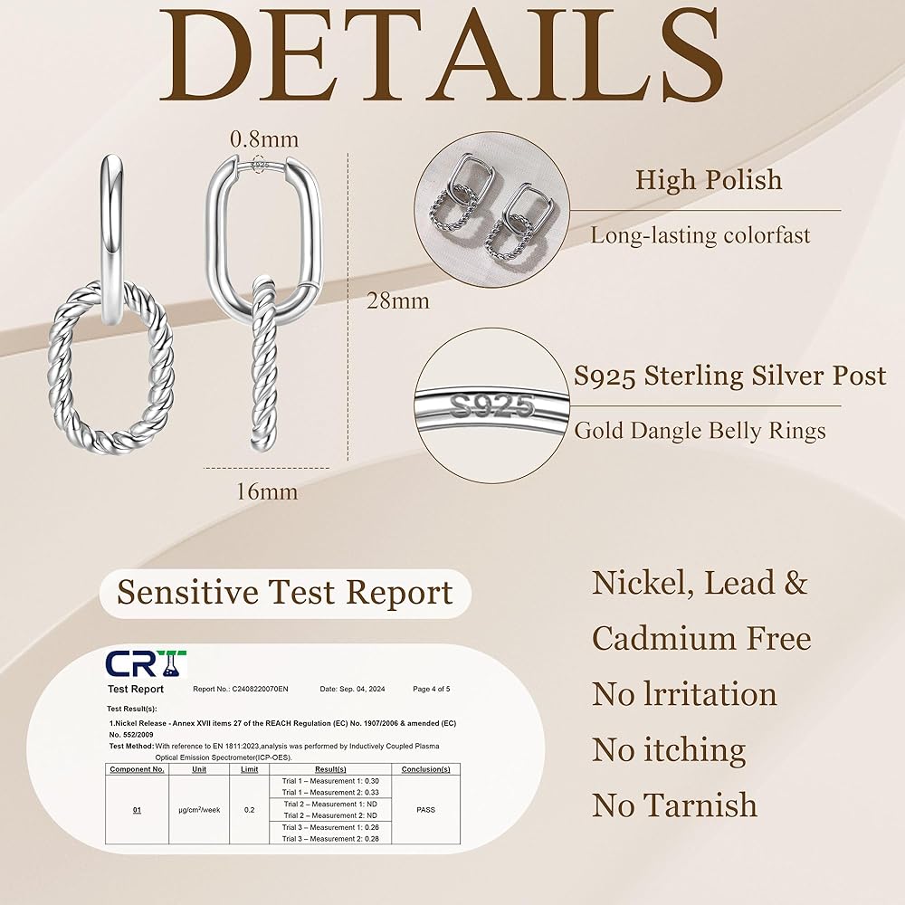 HYPOALLERGENIC S925 STERLING SILVER POSTS - All our dangle hoop earrings are made of hypoallergenic no-nickel material, the drop dangle earrings are made of high quality copper and S925 sterling silver earrings posts, no lead and nickel, with the thick 18K real gold plating, durable, not easy to fade and bend
