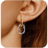 GOLD DANGLE EARRINGS FOR WOMEN - These paperclip drop dangle earrings are crafted with 18K real gold plating for long lasting brilliant finish, 22mm long when linked together, suitable for most earlobe. These earrings are convertible, wear it linked together or as a single hoop earring, two ways to wear it. Available in 4 styles and 3 color(gold/silver/two tone)