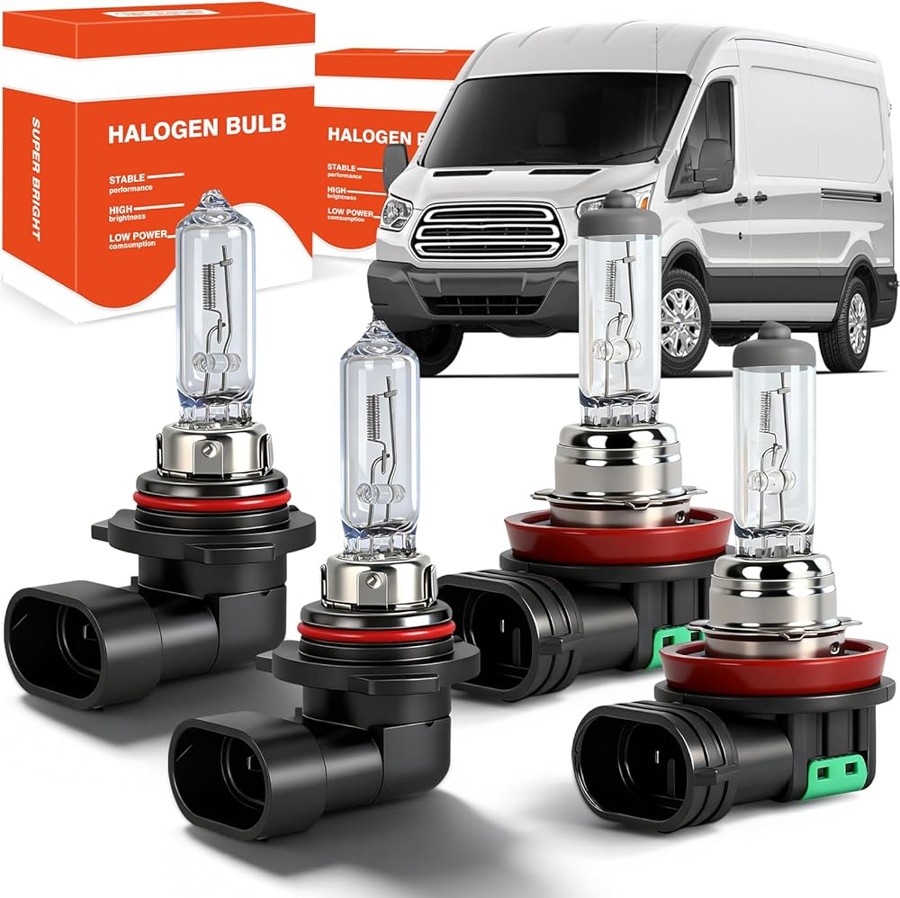 🚗【Compatibility Check Before Purchase】: Halogen Headlight Bulbs compatible with Ford Transit (2014-2023). The Halogen headlight bulb combo includes 9005/HB3 high beam and H11 low beam bulbs, totaling 4 in the package.