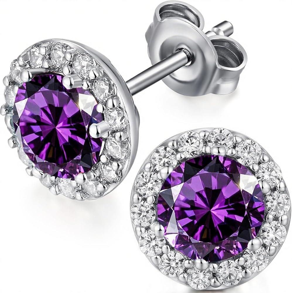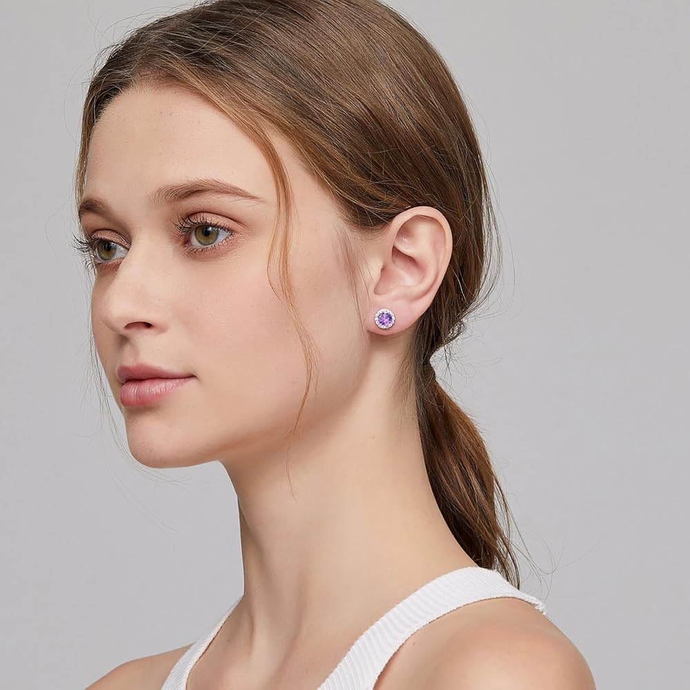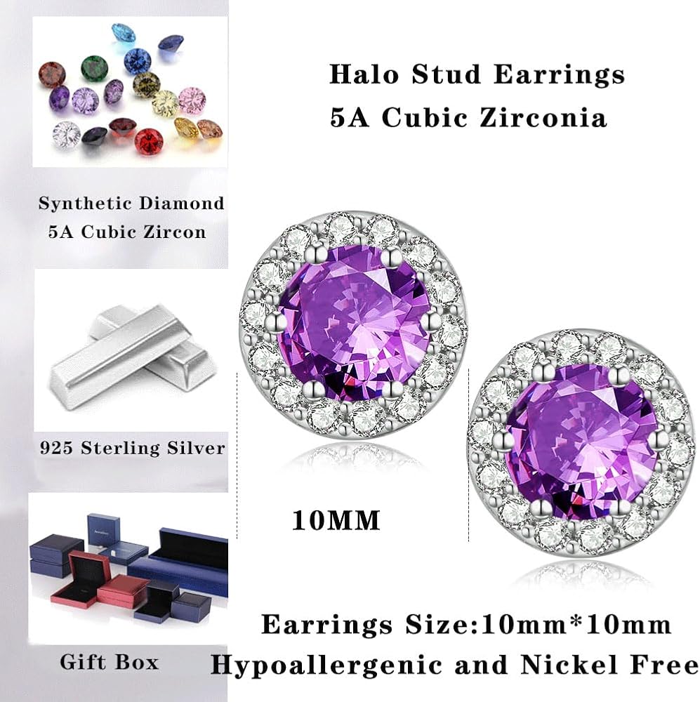 ❤. The Earrings are Made of 925 Sterling Silver, White Gold Plated. Shiny Princess Cut AAAA+ Cubic Zirconia Circle Stud Earrings 9mm. Nickel-free and Lead-free, Perfect Choice for Sensitive Skins.