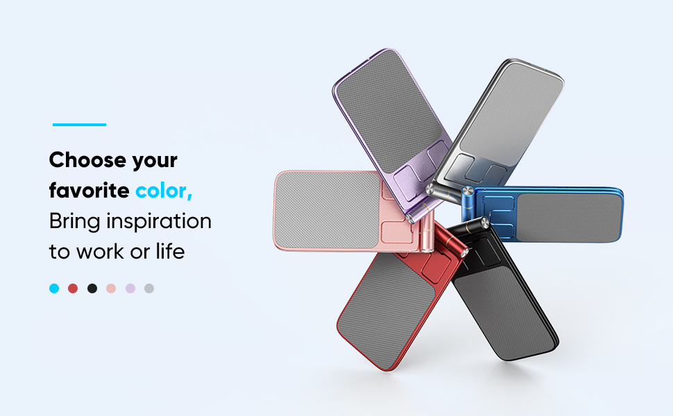 FLAT AND FOLDABLE: The phone stand for desk uses a stable base and can be folded flat without any uneven bumps. Our foldable phone holder is less than 2cm thick when folded so you can easily carry it with you in your purse, backpack, luggage, pockets, etc. when traveling or commuting to your office.