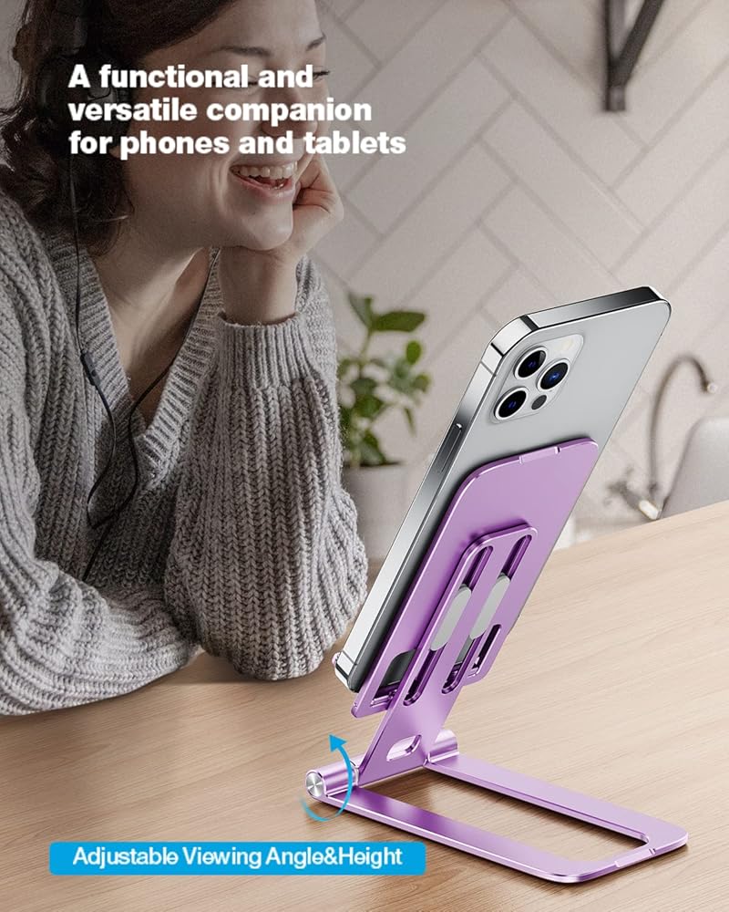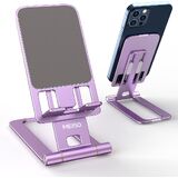 MEISO Cell Phone Stand, Fully Foldable Phone Holder for Desk, Desktop Mobile Phone Cradle Dock Compatible with iPhone, Samsung Galaxy, iPad Mini, Tablets Up to 10” (Lilac Purple)