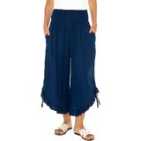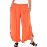 GREAT FIT AND COMFORTABLE. Experience a great fit with these boho-chic women's harem cropped gaucho pants for women. Featuring an elastic high waist and ruffle wide leg design, this wide leg culottes for women provide a relaxed fit and ease of movement. Crafted from soft lightweight semi-sheer rayon fabric, these ruffle pants offer breathability for hot summer days, ensuring both comfort and style