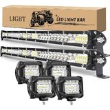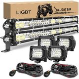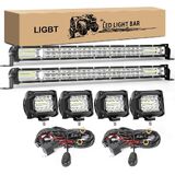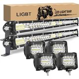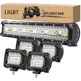LIGBT 17inch 360W LED Light Bar Kit and 4PCS 4 Inch 60W LED Pod Lights Triple Row Flood Spot Combo Driving Boat Led Off Road Lights for Truck Pickup UTV ATV Tractor Boat