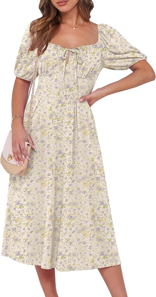 - Features - Women's puff sleeve dress,midi length,casual style.This summer dress is perfect for daily, vacation, wedding, holiday.