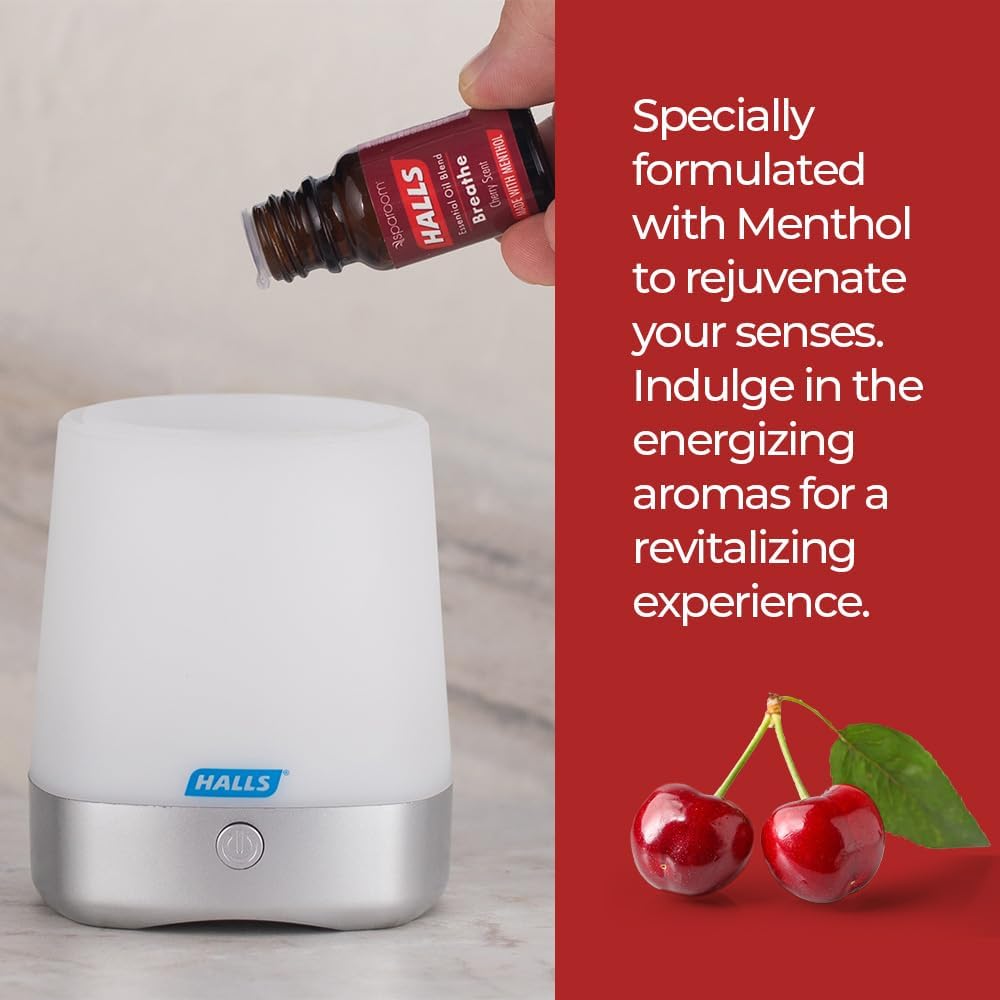 SOOTHING AROMATHERAPY Mentho-Lyptus Essential Oil Blend: Inspired by HALLS cough drops classic flavors, this 100 percent essential oil fragrance will fill your senses and surround you with the relaxing rich aroma.