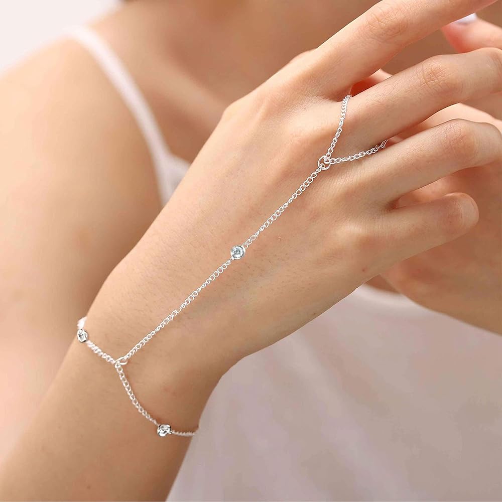 HIGH QUALITY: Featured beaded bracelet with sparkling rhinestones. The ring with bracelet is adjustable for wrist length, lightweight, smooth and comfortable, delicate and sturdy; we designed this bracelet to be even more sturdy with a hand tie on the slave finger ring.