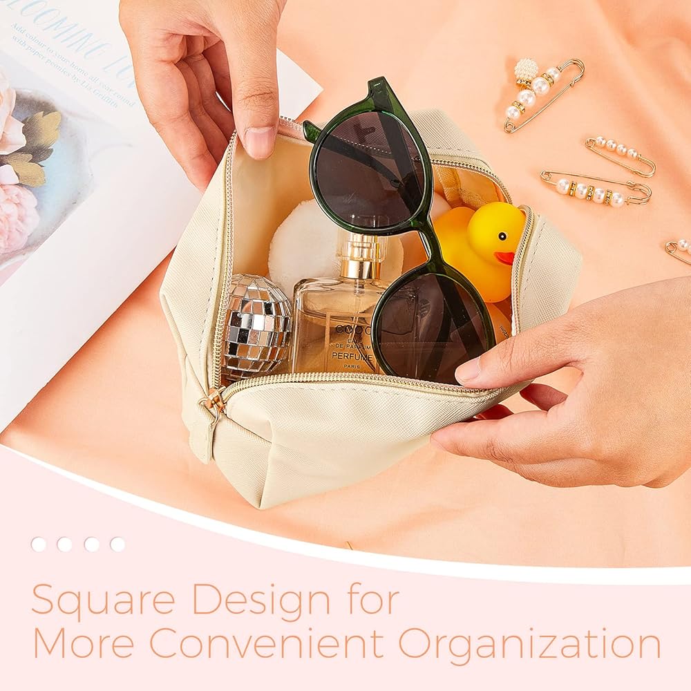 Dunzy 8 Pcs Makeup Bag Pu Leather Cosmetic Pouch Waterproof Small Toiletry Bag Portable Cosmetic Organizer Water Resistant Storage Purse for Lady Women Daily Storage Travel Organizer (Beige,Medium)