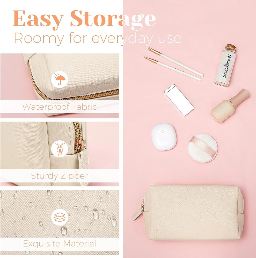 Reliable Material: the small cosmetic bag's surface is made of quality waterproof PU leather, which is beautiful and easy to clean, and the zipper adopts a gold plated slider and a textured golden zipper, which is sturdy and not easy to break, and is a reliable choice for quality storage bags