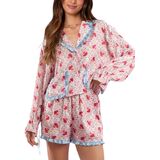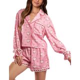 Unique Design: Long sleeve, button down, loose fit, cute heart print, bow print.Women love heart pajamas set, Valentines Day pajamas set for women, women lip print pajamas set sleepwear, women bow print pjs set, women heart pajamas set.