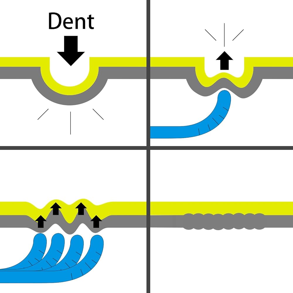 【LOCATE THE DENT】- The strip line board is designed to detect a dent by the status of reflected lines. The reflected lines distort where the dent is and once they become parallel, congrats, you have successfully repaired the dent