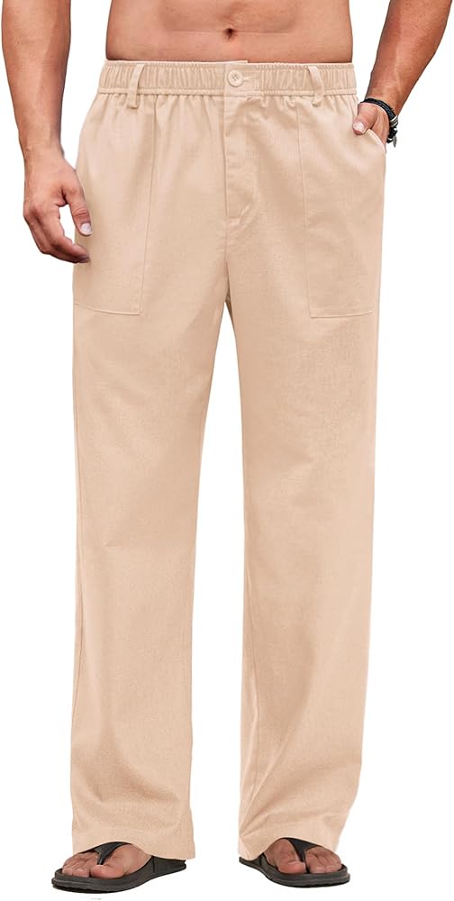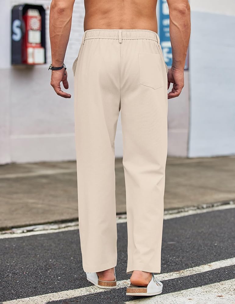 Linen Cotton Blend --- Mens casual yoga pants feature soft and stretchy linen and cotton fabric, lightweight, breathable and skin-friendly, provide you with a comfortable wearing experience.