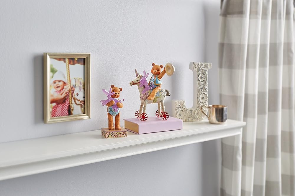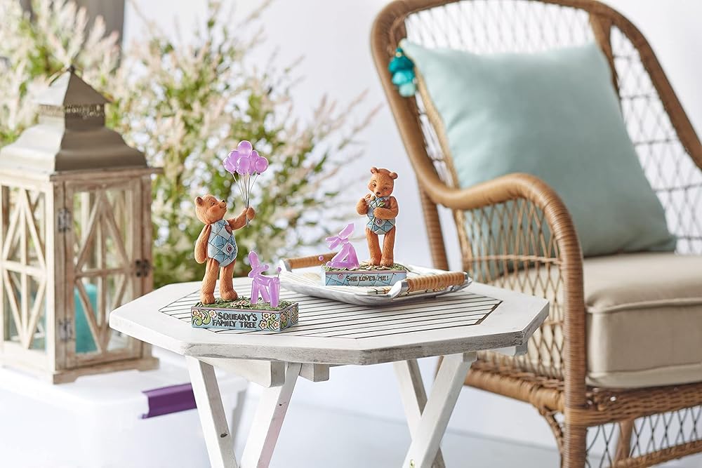 Jim Shore's handcrafted Button and Squeaky collection features Button the Teddy Bear and Squeaky, his Balloon Dog friend. Their story is based on everyday themes and activities, things we all experience, and happenings and reflections they face together. She loves me, she loves me not... Good to know Squeaky always does! Button the Teddy Bear and Squeaky, his Balloon Dog friend, find adventure, wisdom and fun along the way as they explore a magical world drawn from the imagination of artist Jim Shore. About Us: Enesco is committed to BRING JOY EVERY DAY. The premier global destination for high-quality giftware, and home décor, our prestigious family of brands includes: Department 56 Village, Things Remembered, Foundations, Jim Shore Heartwood Creek, Disney Traditions by Jim Shore, Disney Showcase Collection, Disney by Britto, Designs by Lolita, Our Name Is Mud, and many more.