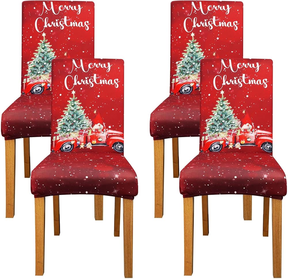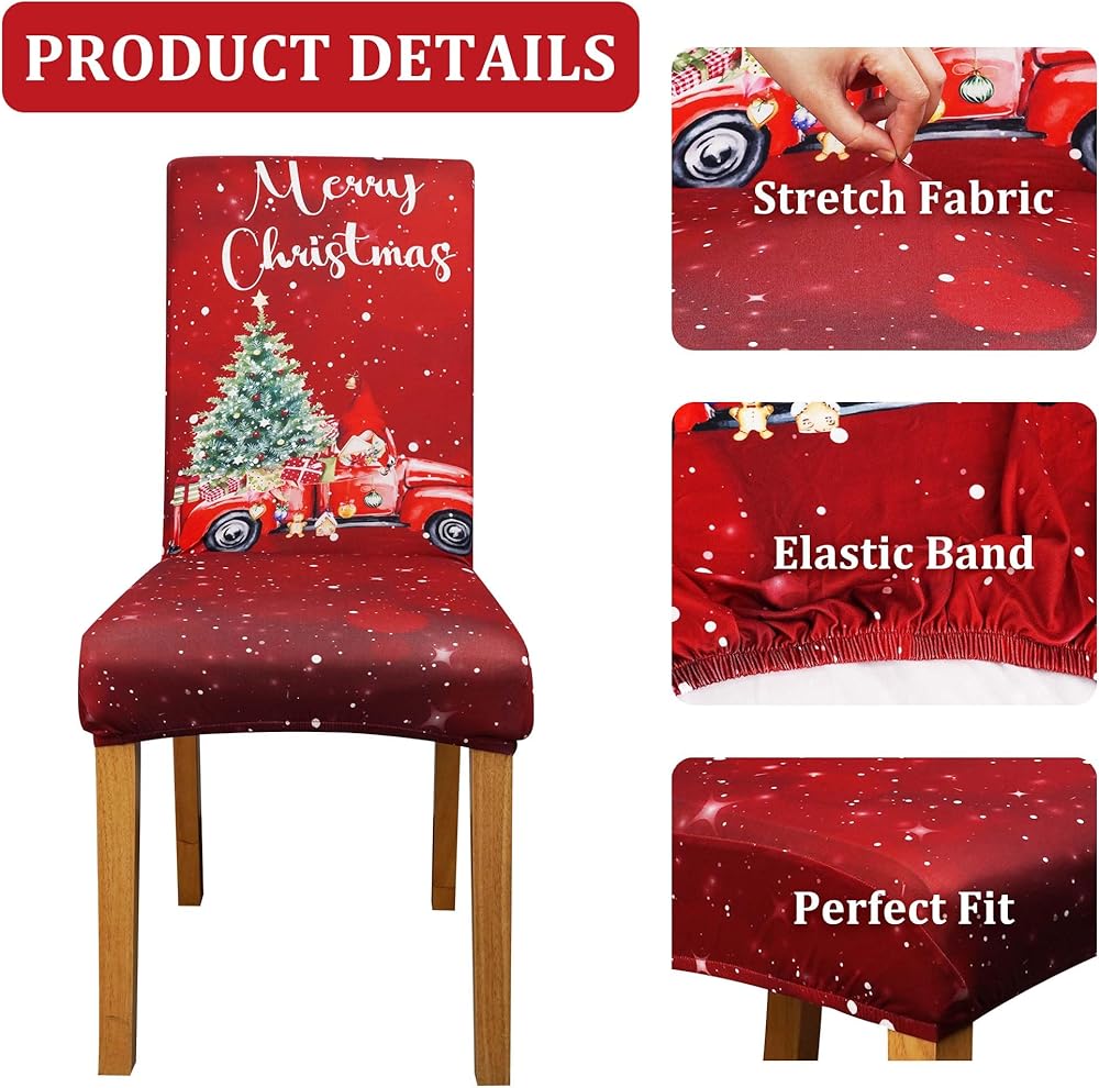 Premium Quality: The Christmas chair covers are made from high-quality polyester and super stretch spandex fabric, featuring two-way elasticity that ensures both softness and comfort. These Christmas Slipcovers are not only wrinkle-resistant but also durable. They are designed with anti-slip elastic bands to firmly secure the dining chair slipcovers in place, providing an effortless and stylish way to update your home decor.