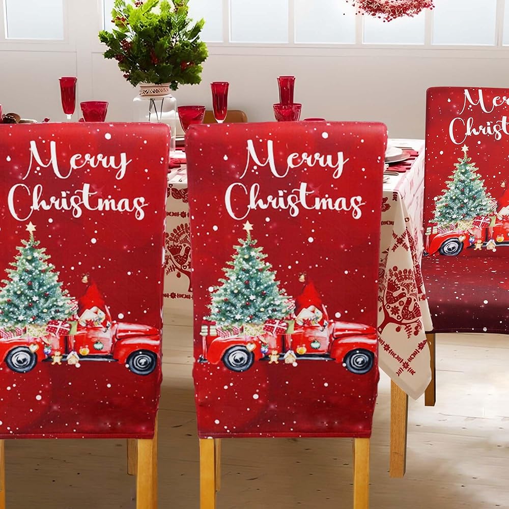 Protective Function: These Christmas dining chair slipcovers protect your dining chairs from spills, stains, wear, tear, dirt, and damage from pets, giving your chairs a refreshed look and infusing a Christmas atmosphere into your home. These Merry Christmas chair covers are ideal for homes with kids and pets, offering an economical and cost-effective solution for chair protection.