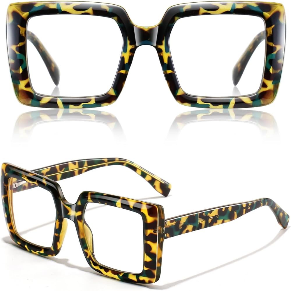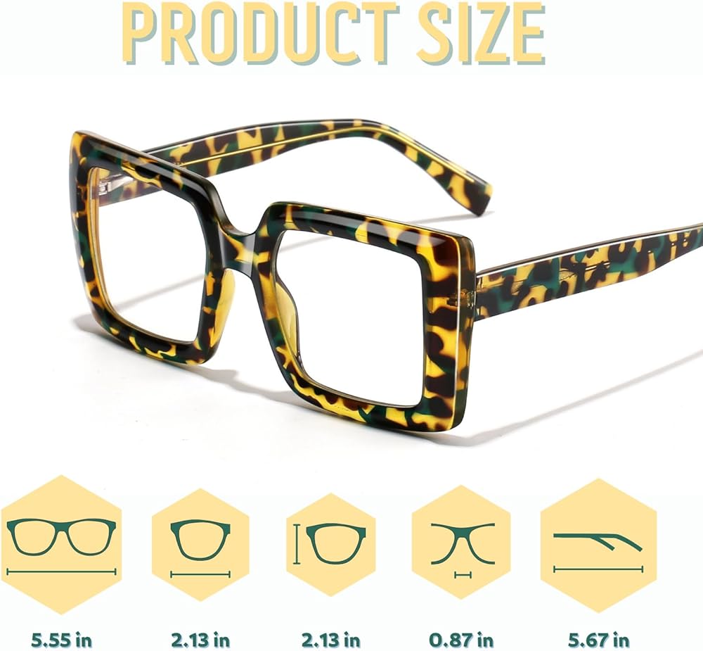 Oversized Square Blue Light Blocking Glasses Lightweight UV400 Anti Eyestrain Protection TV Computer Gaming for Women