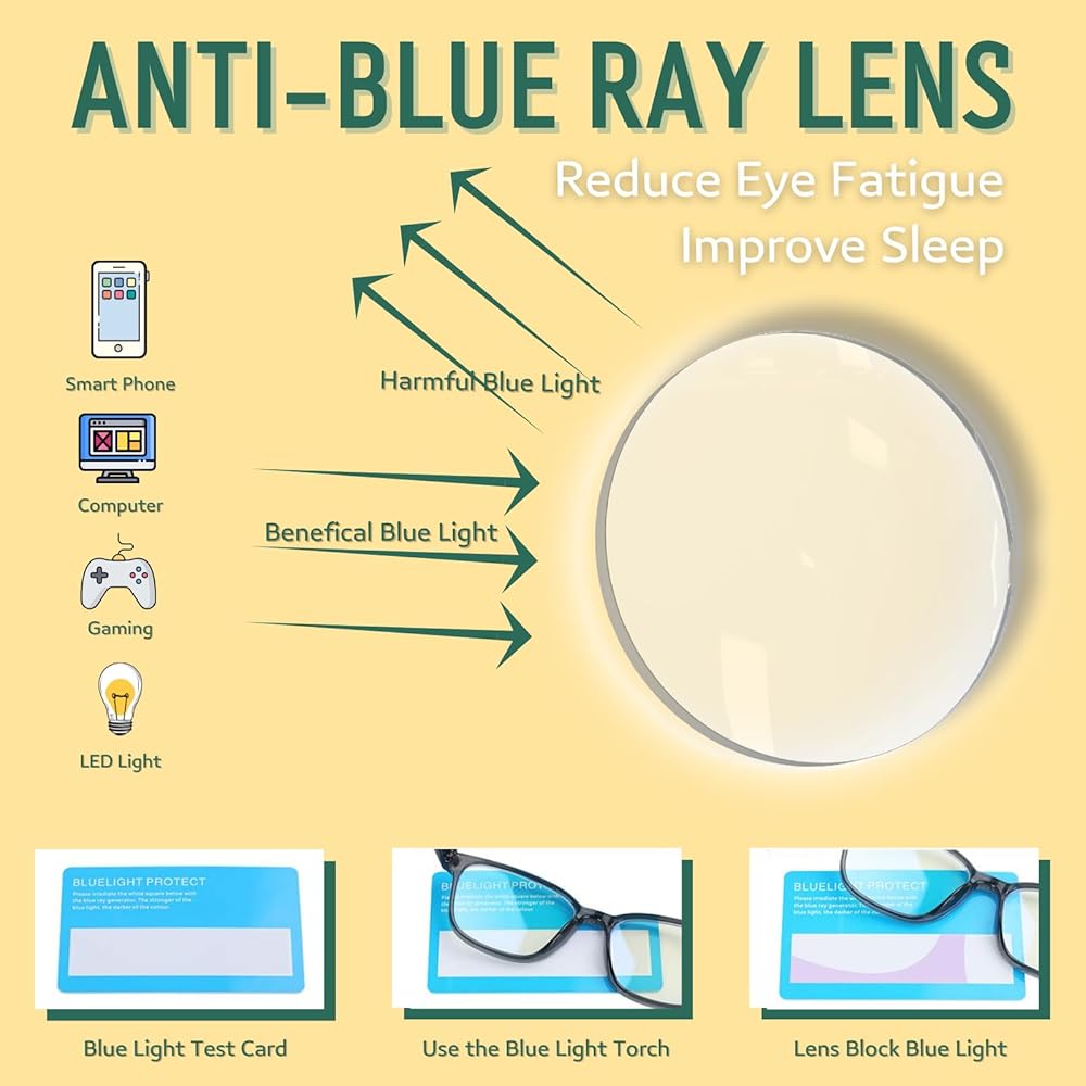 • 【Lightweight & Comfortable】: The ergonomic design ensures all-day comfort. These lightweight glasses are perfect for long periods of work, study, or gaming.