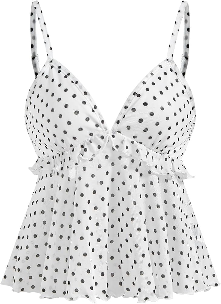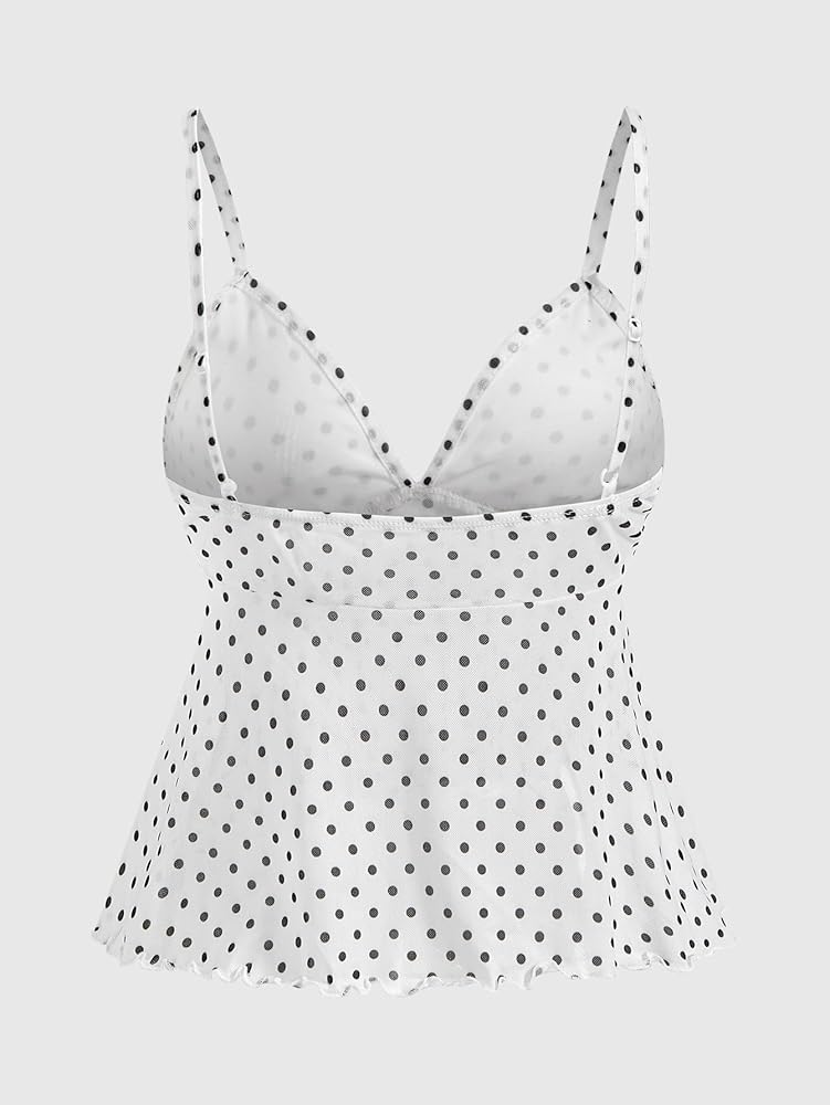 Feature: Floral Print, All Over Print, V Neck, Spaghetti Straps, Lettuce Trim, Ruffle Hem, Backless Cami Tops for Women
