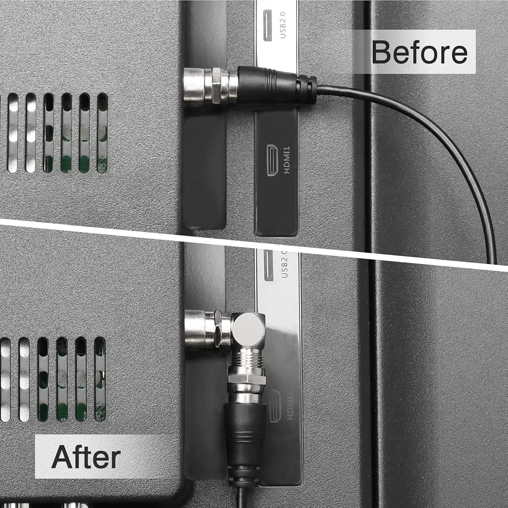 - PREVENTS PERFORMANCE LOSS – The right-angle design helps to prevent damage to coaxial cable due to bending of the cable for a long time