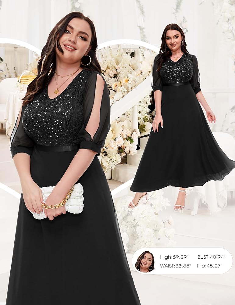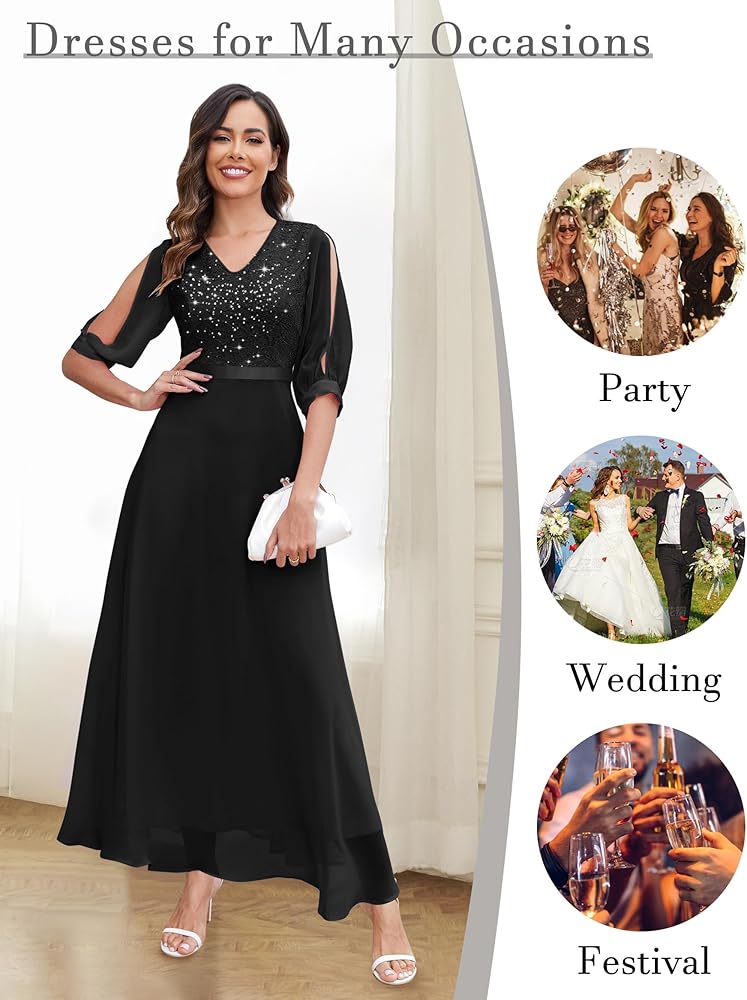 Elegant Design: Our long sleeve maxi dress features a stunning lace overlay adorned with sparkly sequin, making it an ideal formal choice for any evening event, wedding guest invitation, or cocktail party.