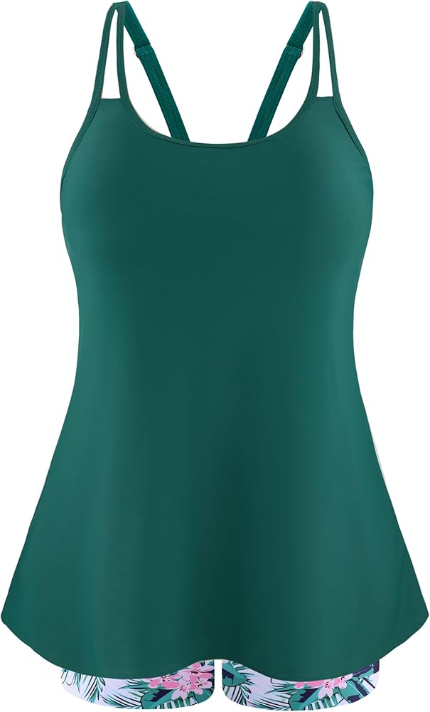 Two Piece Tankini Set: Womens plus size swimsuit has a loose fit swim top and high waisted boy shorts.This ladies swimwear is Available in Multiple Sizes: 16 Plus (US 16W), 18 Plus (US 18W), 20 Plus (US 20W), 22 Plus (US 22W), 24 Plus (US 24W). Choose the suitable size from the detailed measurement guide.