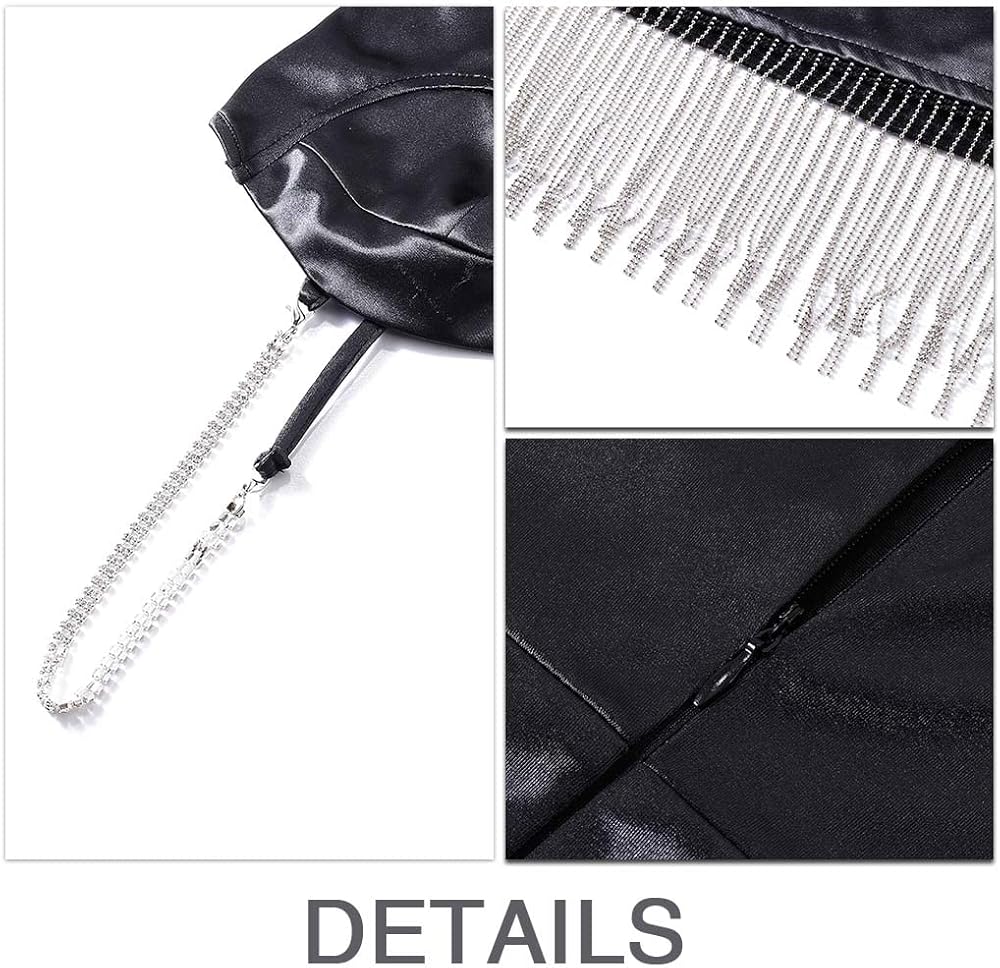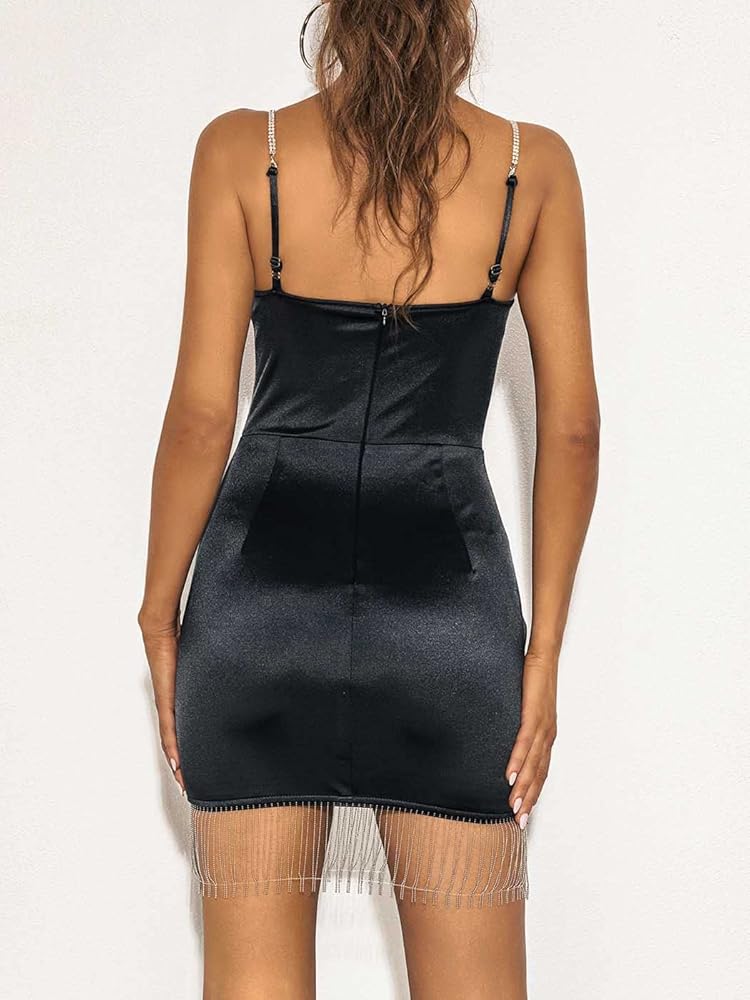 2.V neck satin mini dress is fashion. First of all, There is a tassel design, which adds a sense of design to the whole dress, and secondly, V neck and mini length can show your body chrming.