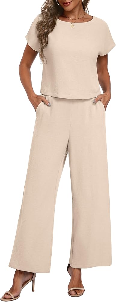 2 Piece Outfit for Women - Short Sleeve Top and Wide Leg Pants Sets Matching Set