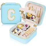 Initial Travel Jewelry Box Case Organizer, Teen Girls Gifts, Small Personalized Preppy Birthday Christmas Gifts for Girls Women Wife, Ring Necklace Earring Organizer Box, Blue C