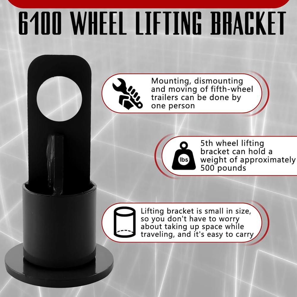 COMPATIBILITY: Our 5th wheel lifting bracket fits perfectly and directly into the standard kingpin openings. If you like to camp a lot, this fifth bracket lifting makes it easier and safer to operate your 5th wheel trailer for mounting, dismounting and moving. It can be done by only one person, saving you a lot of time and energy and making your journey smoother
