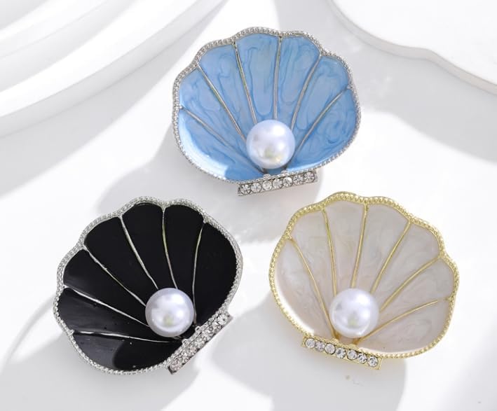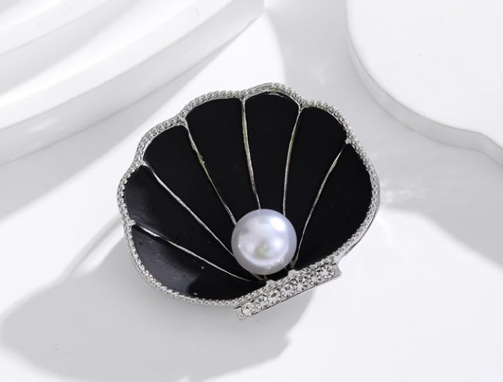 Seashell Brooch Pin White Pearl Crystal Shell Lapel Pin Vintage Clam Shell Badges Women Men Suit Coat Jewelry Chic Dress Sweater Jacket Decors