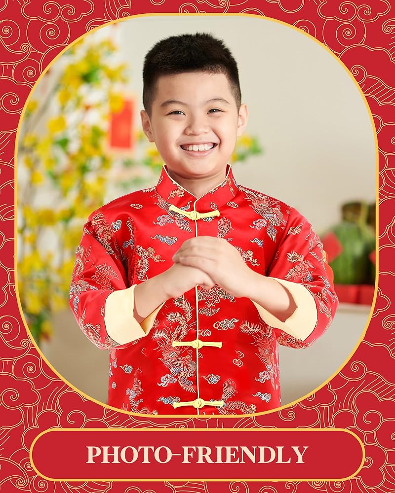 Versatile Usage: suitable for the atmosphere of the Lunar New Year, the Tang style Chinese New Year suit can be worn daily and withstand regular washing, assuring you of multiple usages; The Chinese traditional clothes for kids are thus more than just an outfit, they are a blend of culture, style, and convenience