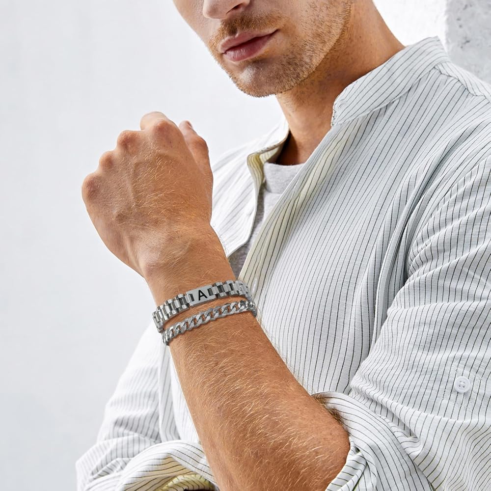 Initial Bracelet for Men: Customize your style with this unique bracelet featuring A-Z initials, making it a meaningful and one-of-a-kind accessory that suits anyone's taste and personality. Stand out from the crowd and make a statement with your own initial bracelet.