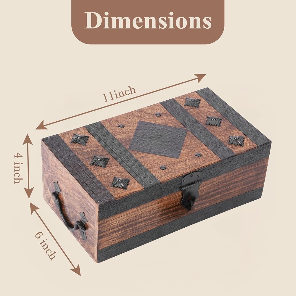 【DURABLE & VERSATILE】: Made from high-quality mango wood, this chest box ensures durability. Perfect for organizing jewelry, keepsakes, and small accessories, it combines practical functionality with a stylish design.