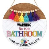 HOURIA 3D Rainbow Kids Bathroom Decor,11.5"Toddler Bathroom Door Decorations with Tassels Garland Boho Boys Girls Bathroom Toilet Wall Sign I Have No Control Here Kids Bathroom Wall Hanging Plaque