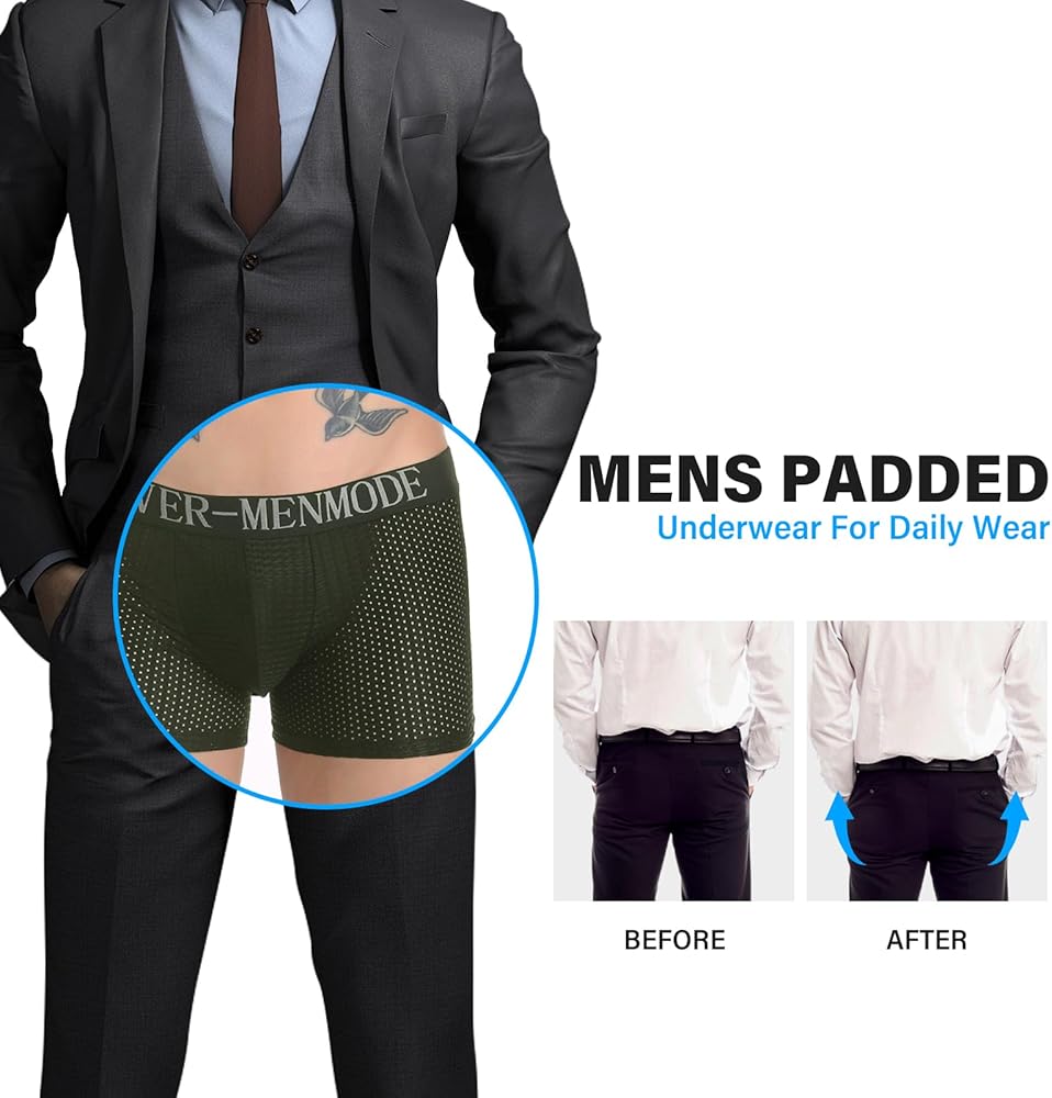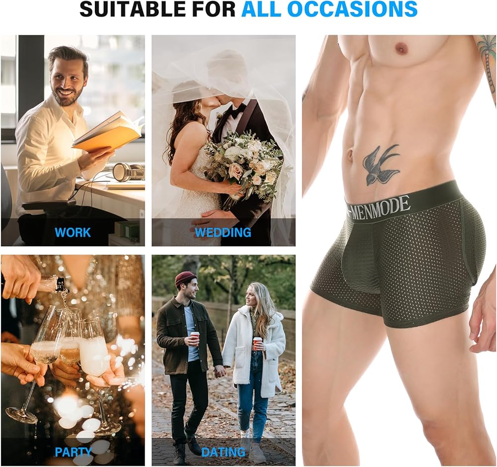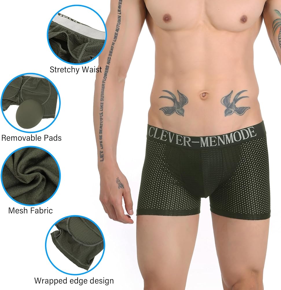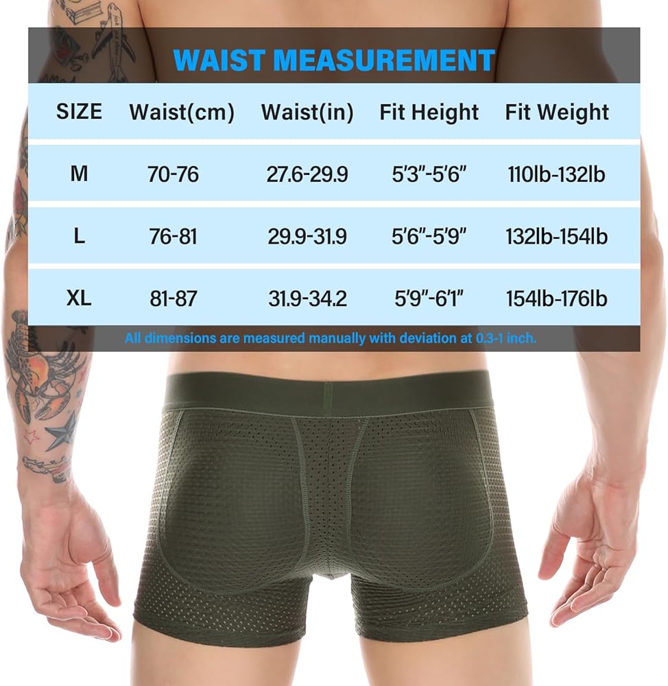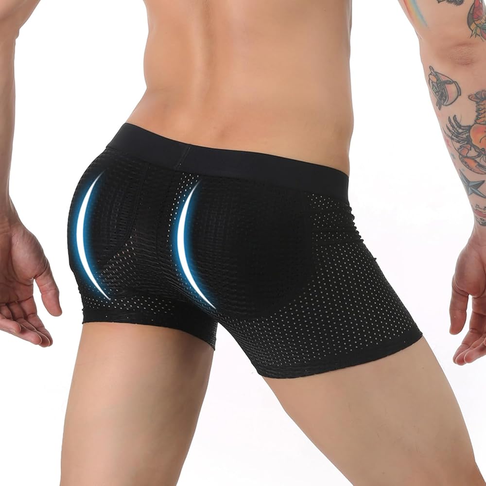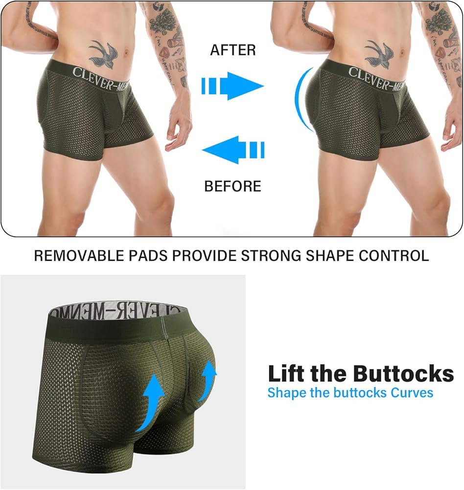 Mesh Mens Padded Underwear Butt Enhancer High Waisted Shapewear Butt Lifter Boxers with Detachable Pads