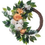 💐【Wreath Material】The artificial hand-made apricot rose was made of cloth and fluffy flocked lamb ear was made of softy flannel. We also have some white cloth - small hydrangeas and foamy paddies, and the plastic green leaves play a role in harmonizing the colors and thus highlighting the main body of the roses.