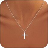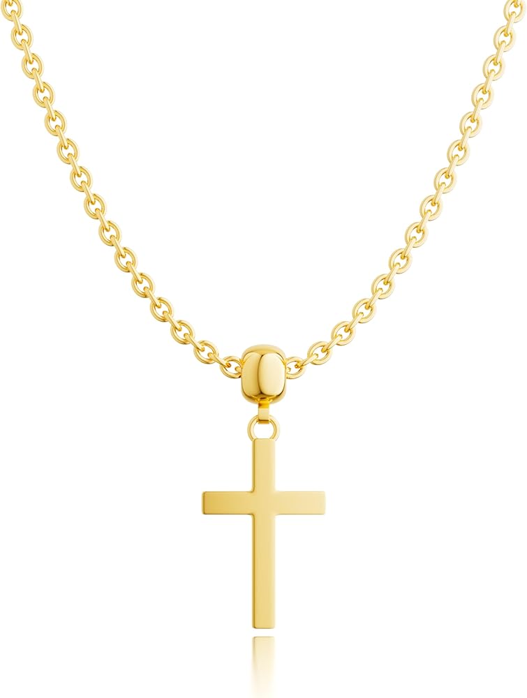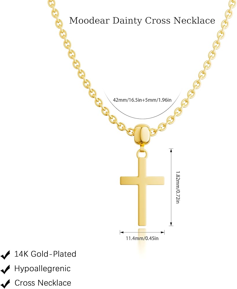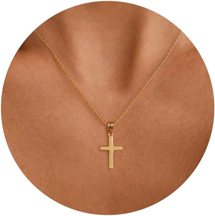 Moodear Easter Basket Stuffers Cross Necklace for Women - Dainty 14K Gold Plated/Sterling Silver/Rose Gold Layered Cross Pendant Simple Necklaces for Women Trendy Jewelry Gifts