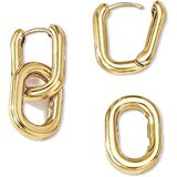 gold and silver earrings for women: Dainty gold set silver earrings are in double hoop paperclip link design,gold link earrings lightweight and comfortable to wear or take off, that you can wear every day