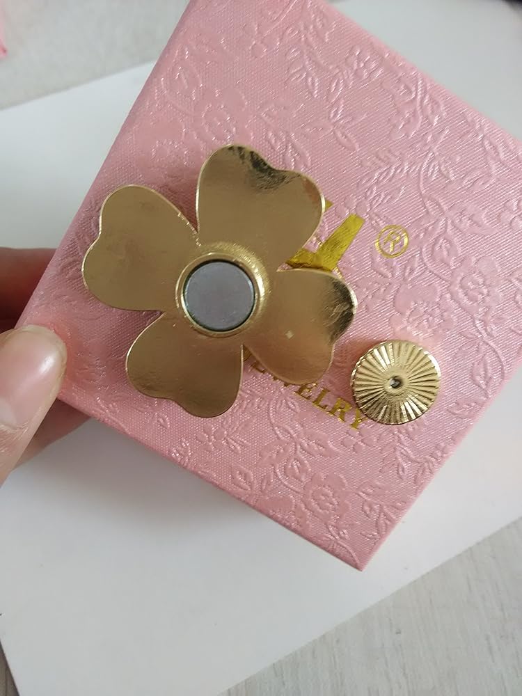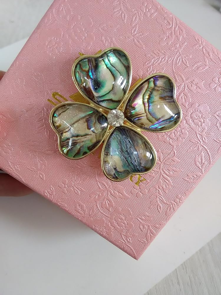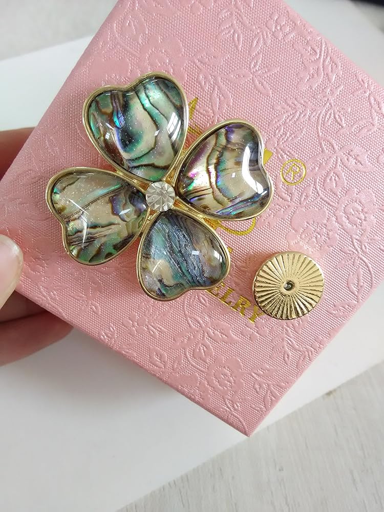 SENFAI Gold Four Heart Leaf Abalone shell Flower Magnetic Clip Holder Brooch Jewelryeven Simple Clothes with this water blue opal flower brooch enable you more attractive