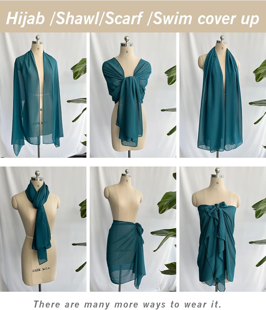 Large size: 190 x 110 cm, Chiffon Shawl is Wide Enough to Cover Your Shoulders and Back. It Can be Draped Over the Shoulders, Around the Neck, Casually On the Arms, Tied Around the Waist, Use as a Scarf, Shawl, and Bikini Cover Up.