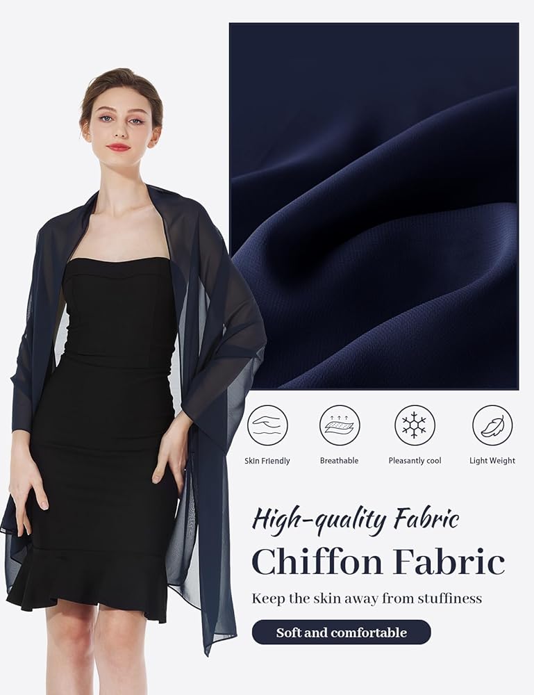 Gifts:Soft shawls is made of Chiffon fabric,One Size fits all womens and girlsis a perfect gift for brides, bridesmaids, weddings, bridal, mother or any formal events.