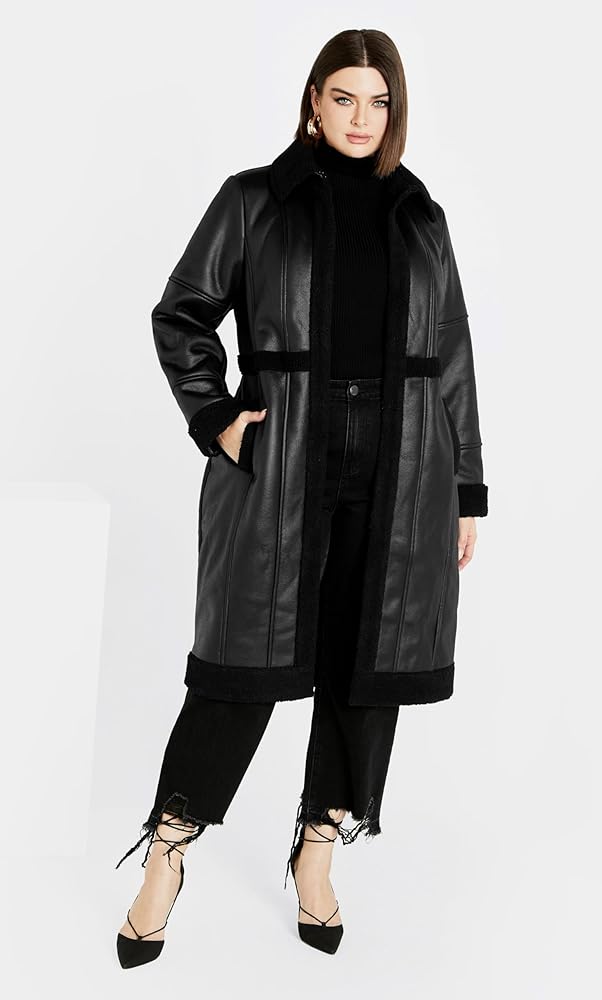 Step into the season with confidence and warmth in the stunning Hayden Coat in black. This coat is more than just an outer layer; it's a statement piece that combines timeless style with exceptional comfort. Crafted with a plush shearling inner lining and classic collar, the Hayden Coat cocoons you in luxurious warmth while its suede-like fabrication offers a sophisticated and sleek finish. Whether you're heading to an evening soirée or a casual brunch, this coat promises to be your go-to for chic winter dressing. The Hayden Coat is designed to meet the demands of modern life, boasting practical features without compromising on style. Its full-length sleeves and functional pockets are perfect for storing essentials, keeping your hands free for coffee cups or shopping bags. The hook front closure adds a contemporary touch, ensuring that the coat fits snugly and keeps the cold at bay. With its midi length, this coat effortlessly flatters any body type, enhancing your silhouette while offering ample coverage against the chill. Elevate your wardrobe with the Hayden Coat and experience the joy of versatile fashion. Pair it with a cozy turtleneck, your favorite jeans, and a pair of boots to create a look that exudes confidence and sophistication. Perfect for any occasion, this coat celebrates diversity and body positivity, inviting everyone to express their unique style with pride. Don't miss out on this must-have piece—embrace the winter in style with the Hayden Coat.