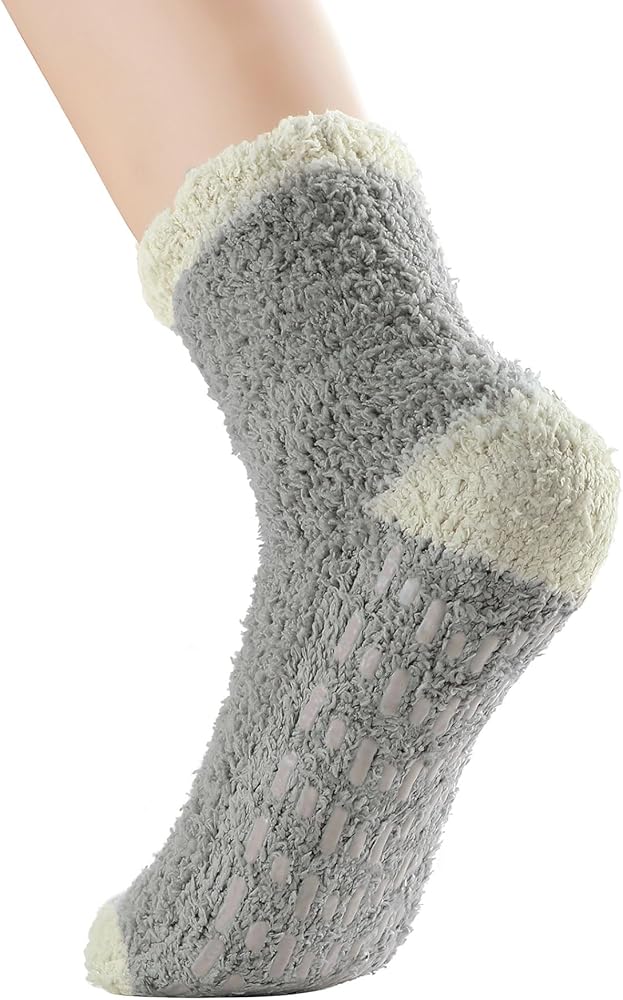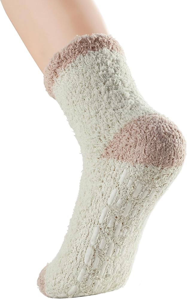 【Non Slip Design】Anti-slip nubs work well, nice thick gripper socks for warmth and safety. The grips on the bottom are great for people on hardwood floors. Non slip fluffy socks for women elderly. No slip socks for women are designed to maximize traction and minimize the risk of any slipping accidents and with a very cozy and soft feel on the inside