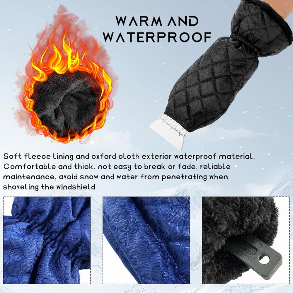 Ice Scraper with Glove, Car Windshield Ice and Snow Scraper with Waterproof Mitt, Warm Cozy Snow Removal Shovel Tool Snow Scraper Mitt for Car Window, Car Accessories (Blue)