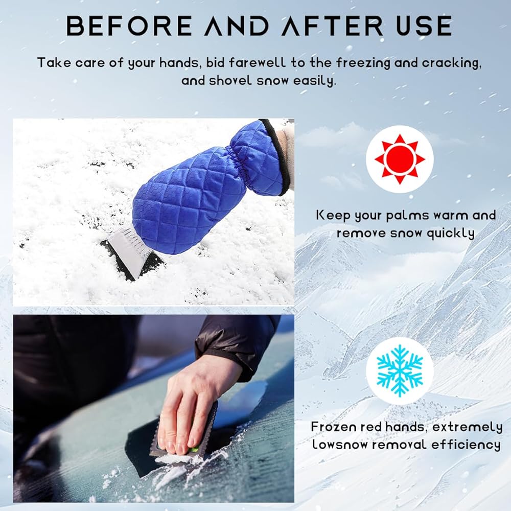 【High Quality】: PP Handle provides a comfortable, non-slip grip, while the premium PS scraper head is highly durable and resistant to wear and low temperatures. The wide blade easily removes snow and ice. And the glove material ensures it remains reliable for winter use.