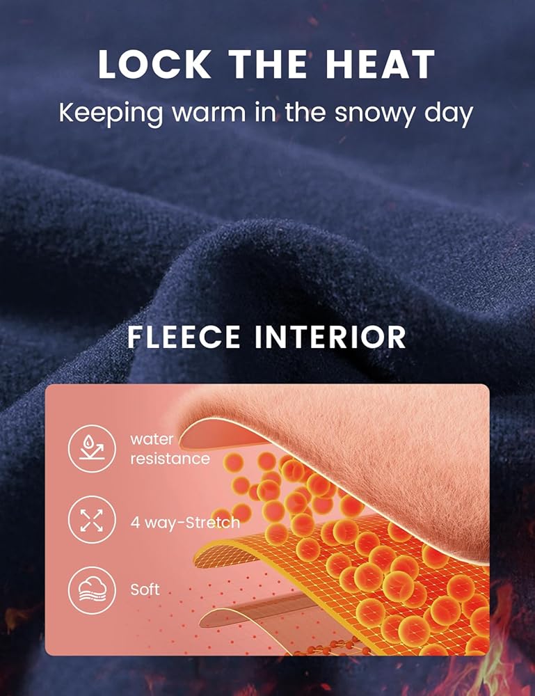 Ideal for cold snowy weather: The winter fleece lined pants with soft fleece lining to keep you warm, the outside water-resistant function is great to keep from wind and stay dry on a snowy day