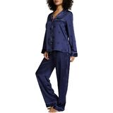 - Now entering sleep mode. Wind down in this satin pant and matching long-sleeve top with a chest pocket, notch collar, and decorative piping.