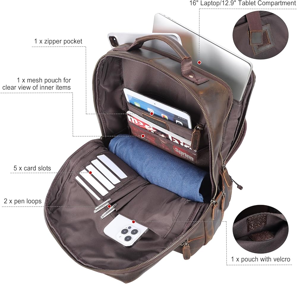 【Purchase with Confidence】One-year quality commitment since you buy the brown leather backpack for men, if you have any questions or concern, please reach us, we will help you to resolve any issues. The men's backpack is a great present for him on birthday, anniversary, Valentine's day, father's day, Christmas, new year.