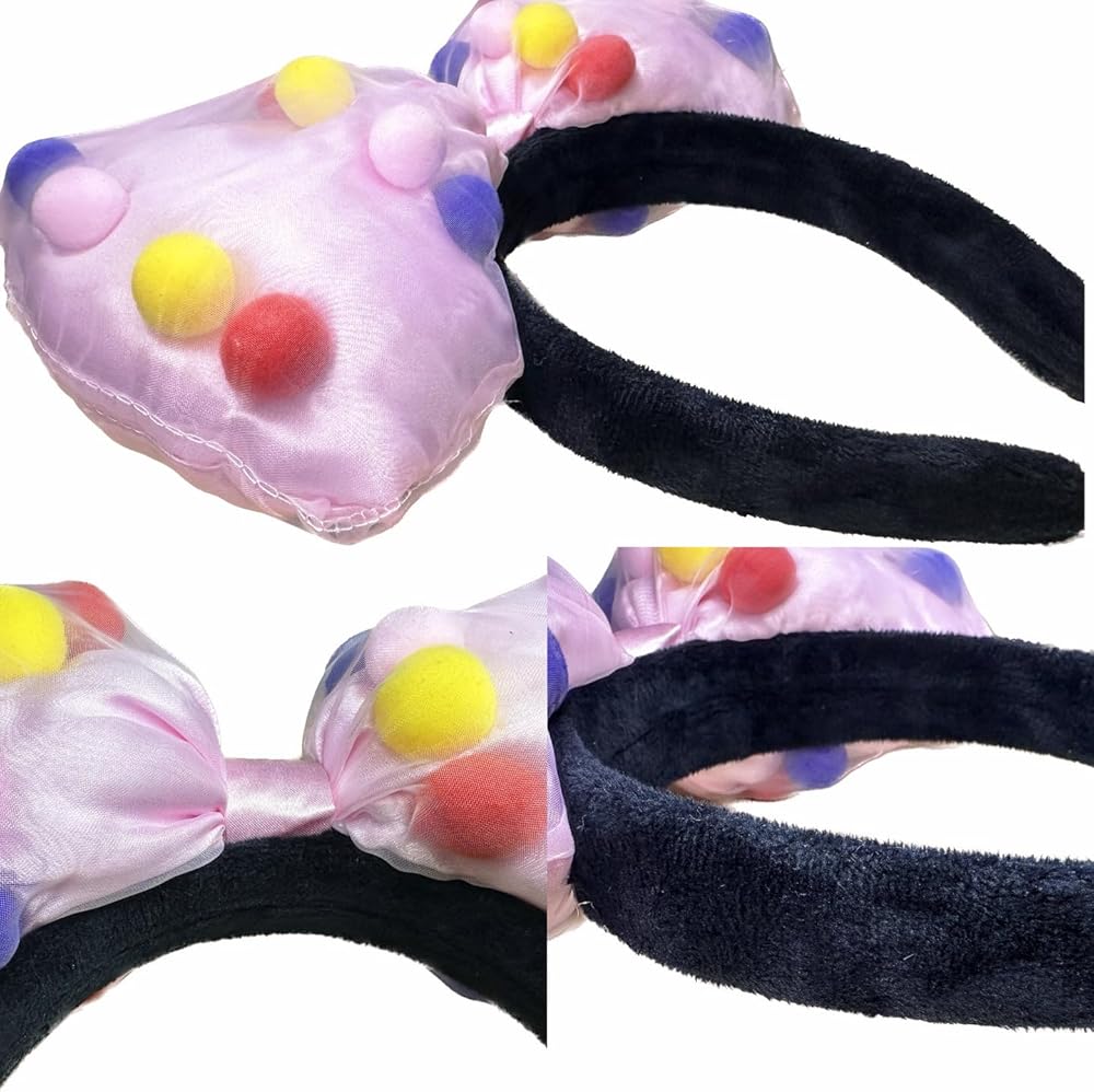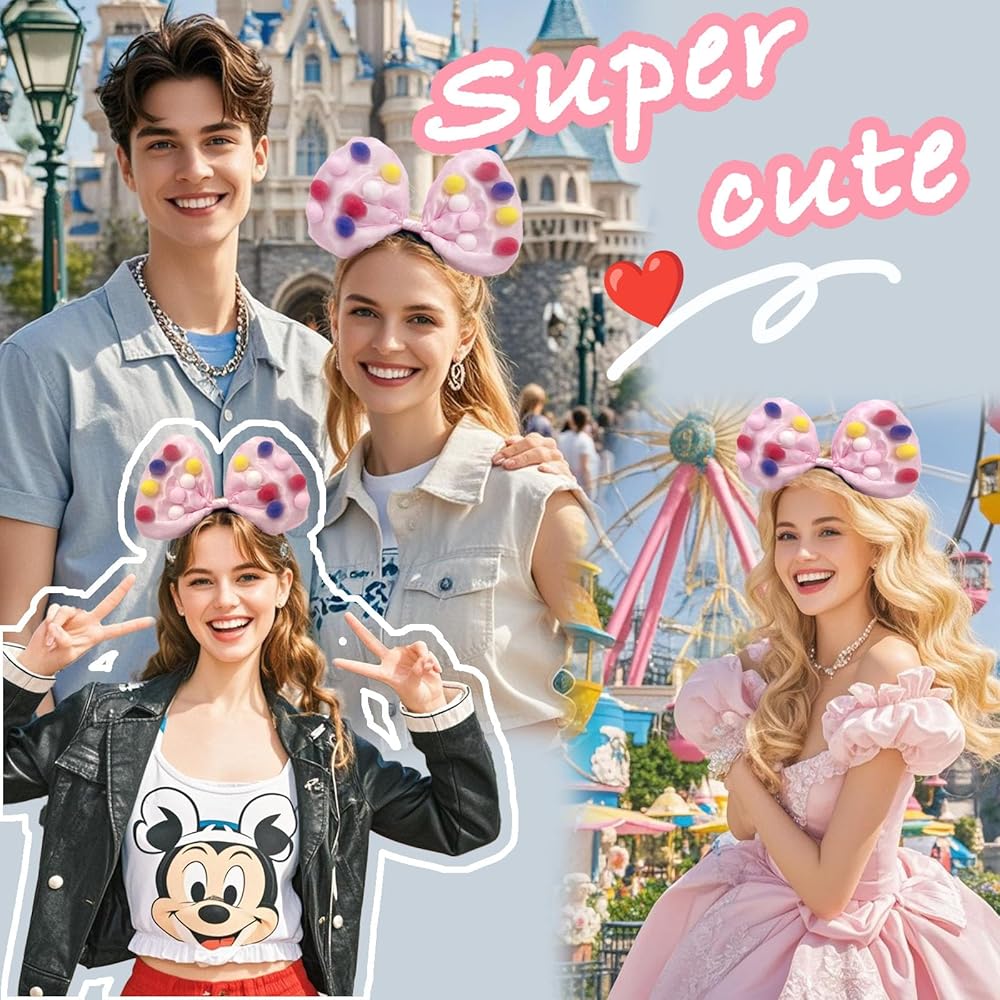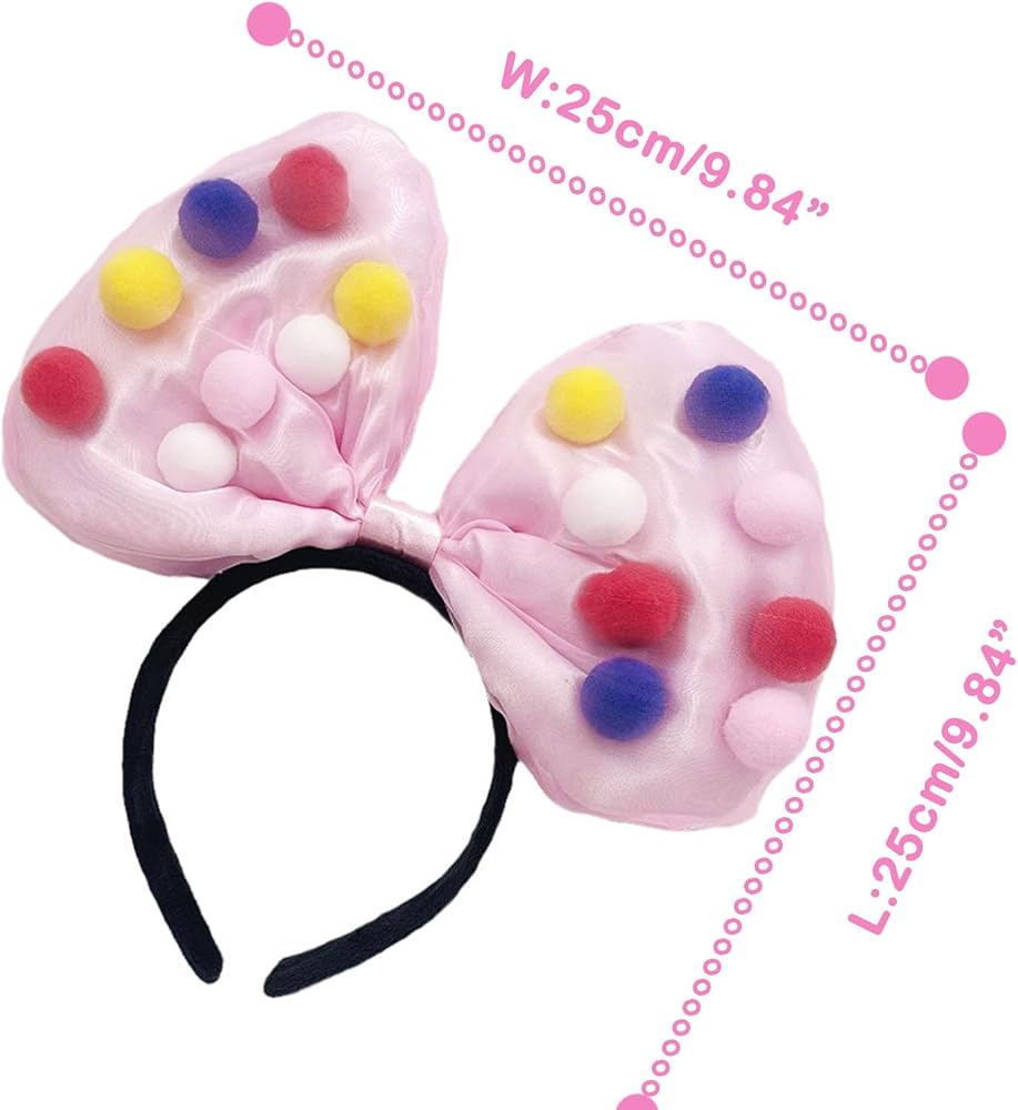 3D bowknot design. High quality cotton fills the bow body, making the entire headband look very three-dimensional and stylish. The middle layer is decorated with colored balls, and the outer layer is wrapped in pink mesh. The unique design of the Gilliger mouse ear headband will add color to your party.